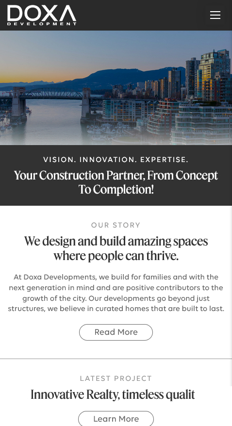 We overhauled Doxa Developments’ website with a modern, responsive design. The new site featured updated service pages, personnel profiles, and images of their recent projects. Our content creation highlighted the company’s brand and success, giving the site a fresh, contemporary look. We also incorporated security features to ensure the website’s safety and protection for visitors.