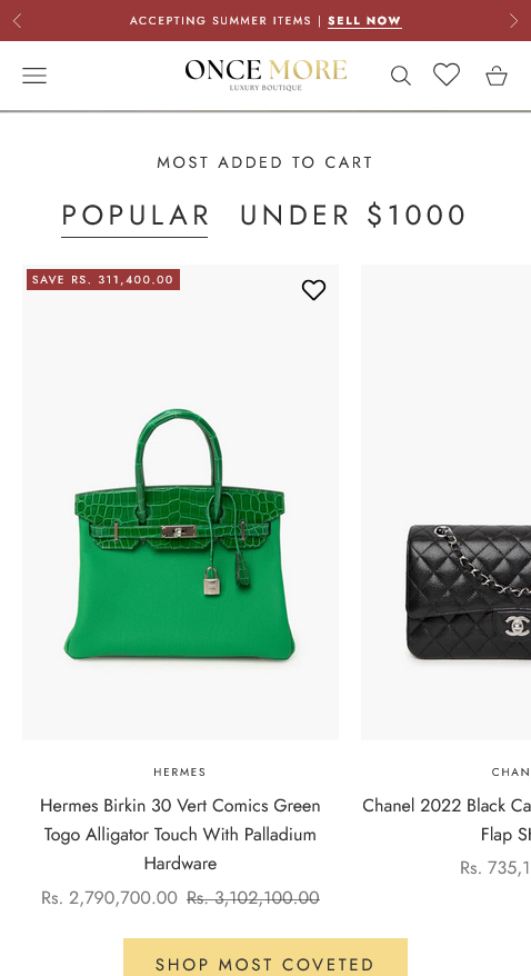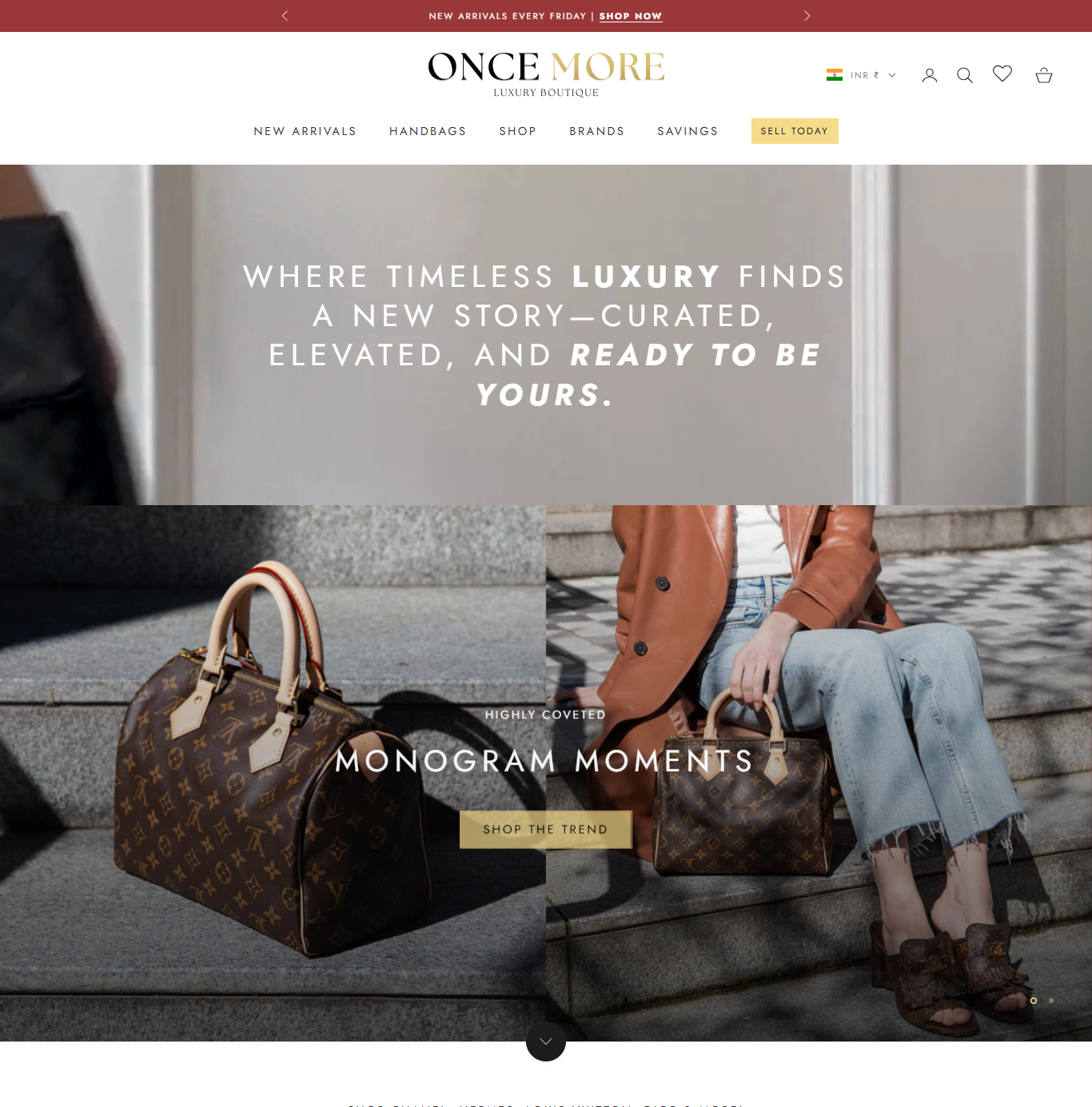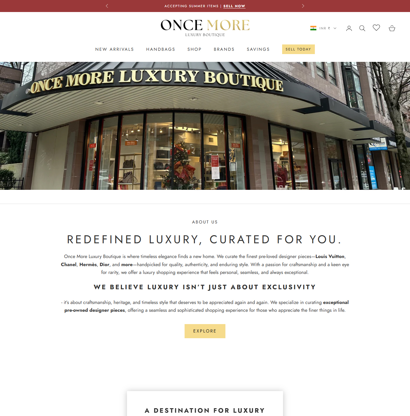 We built a custom Shopify e-commerce site for Once More Luxury Boutique, starting with a refined logo and branding that matched their high-end image. Our team designed a visually appealing website with a focus on showcasing their exclusive collection of luxury items. We enhanced product photography and editing to highlight intricate details, ensuring a seamless shopping experience. A well-structured backend was implemented for easy future product uploads and efficient management.